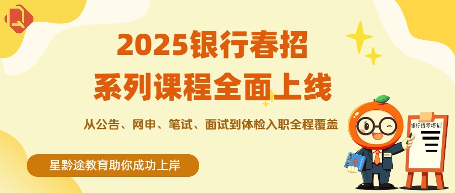 星黔途教育创立于2018年,是一家扎根于西南地区专注于金融银行招考培训的企业,在银行招聘考试培训领域精耕细作近七年,服务学员3500+;自成立以来出版了银行招聘考试专业的辅导教材,在教材出版、辅助产品开发以及课程研发方面始终保持行业领先。我们不仅拥有一支实力雄厚的教师团队,还拥有先进的地区性银行考试教学研究中心,将现有考试制度与本地化的银行考情完美结合,给予广大考生最完美的入行之路。