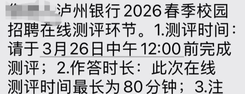 【26号结束】泸州银行发布线上测评通知|笔试资料后台私信